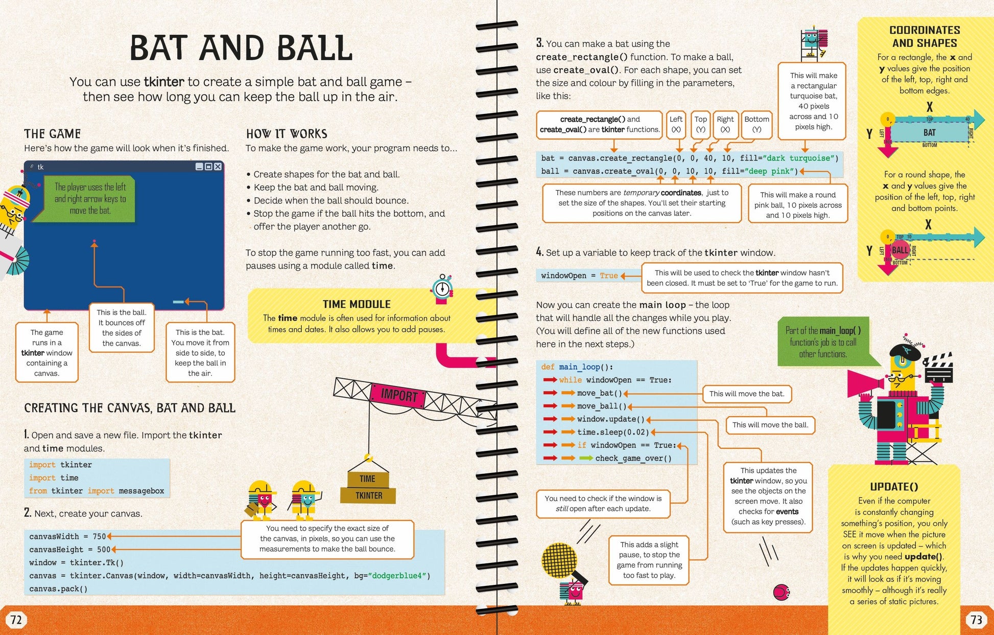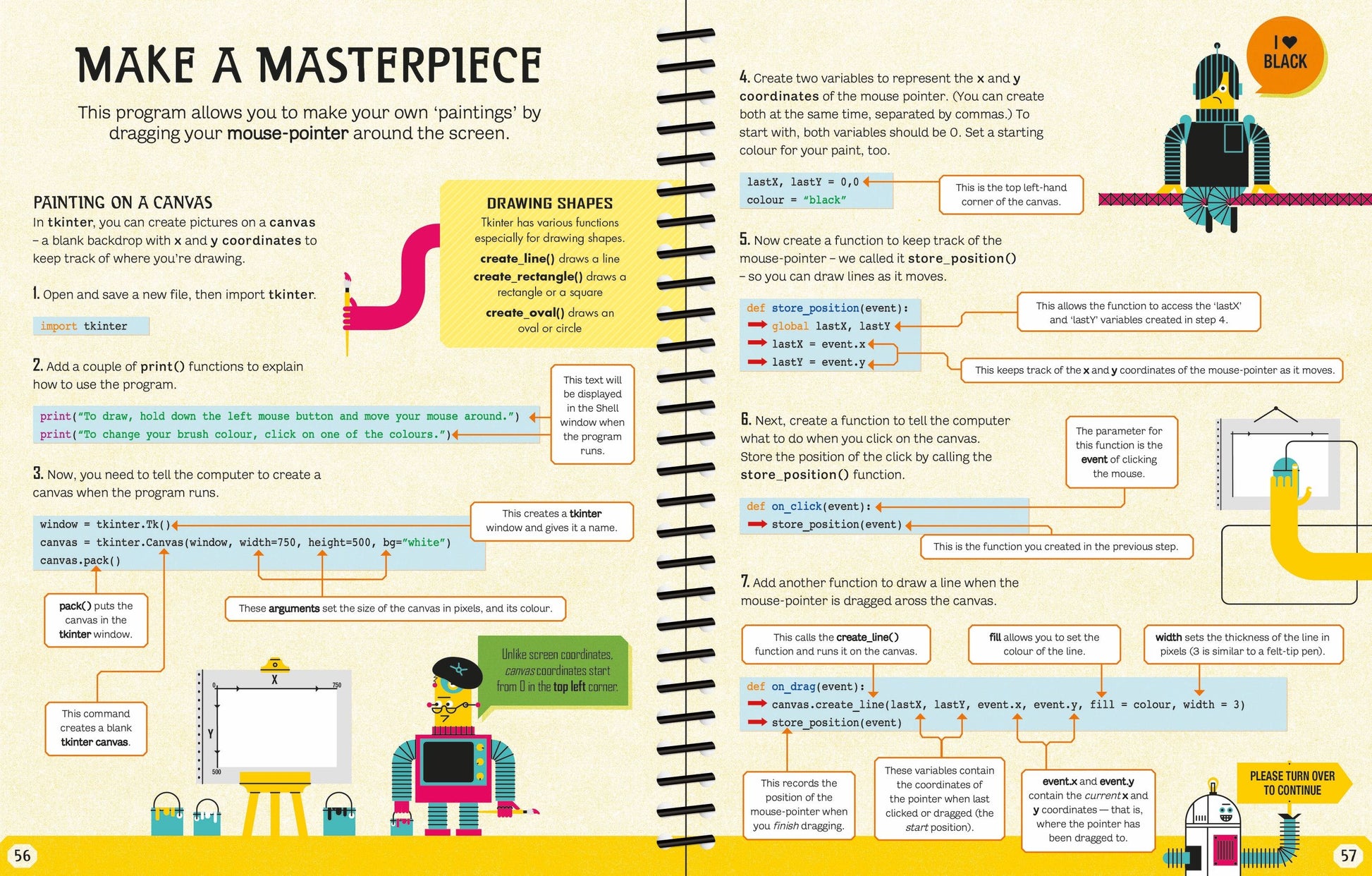 A beginner's guide to coding using Python, one of the most popular computer languages. Step-by-step instructions show how to get started and write a simple program. New commands are introduced with examples and colourful pictures so by the end of the book, readers can code games, drawings and more. Includes extra help and downloads online.