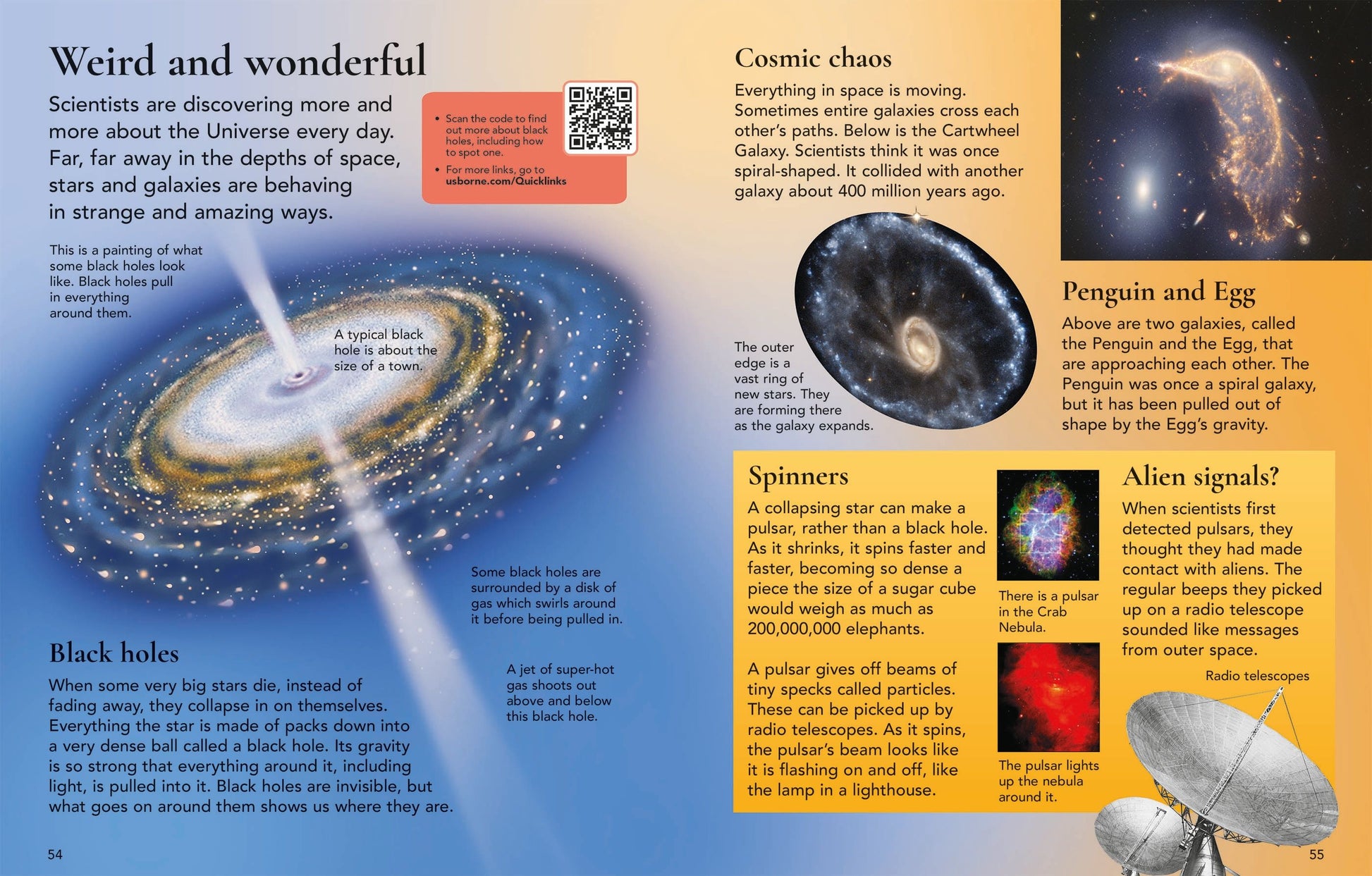 A bright, lively introduction to space with simple text, amazing photographs and detailed illustrations. Provides simple explanations to questions such as "What are stars made of?" "Why does the Moon shine?" and "What do space toilets look like?" Includes internet links to carefully selected fun and informative websites.