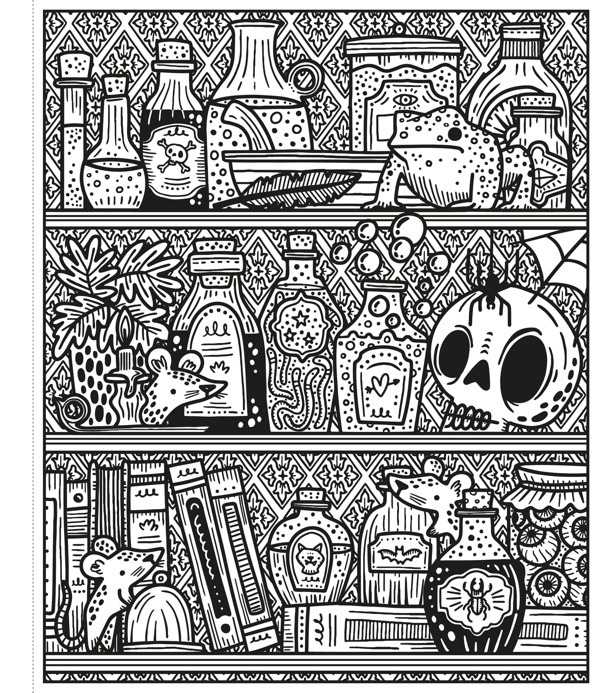 Spooktacular scenes burst into vibrant colour as you brush water over the black and white illustrations in this magical book! Sixteen detailed pictures include a haunted house, a family trick-or-treating, witches around a cauldron and lots more. With a handy fold-out back cover to prevent colours running through to the page beneath.